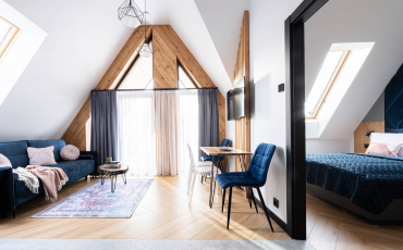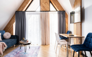 Apartament z oddzielna sypialnią i dużym łóżkiem małżeńskim. Przestronny salon oraz wygodna, rozkładana kanapa umili pobyt każdemu miłośnikowi górskich wycieczek.Dopracowany w każdym detalu. Dla naszych gości bezpłatny dostęp do strefy SPA (basen z funkcja jacuzzi oraz sauna fińska, otwarte od 16:00 do 21:00)