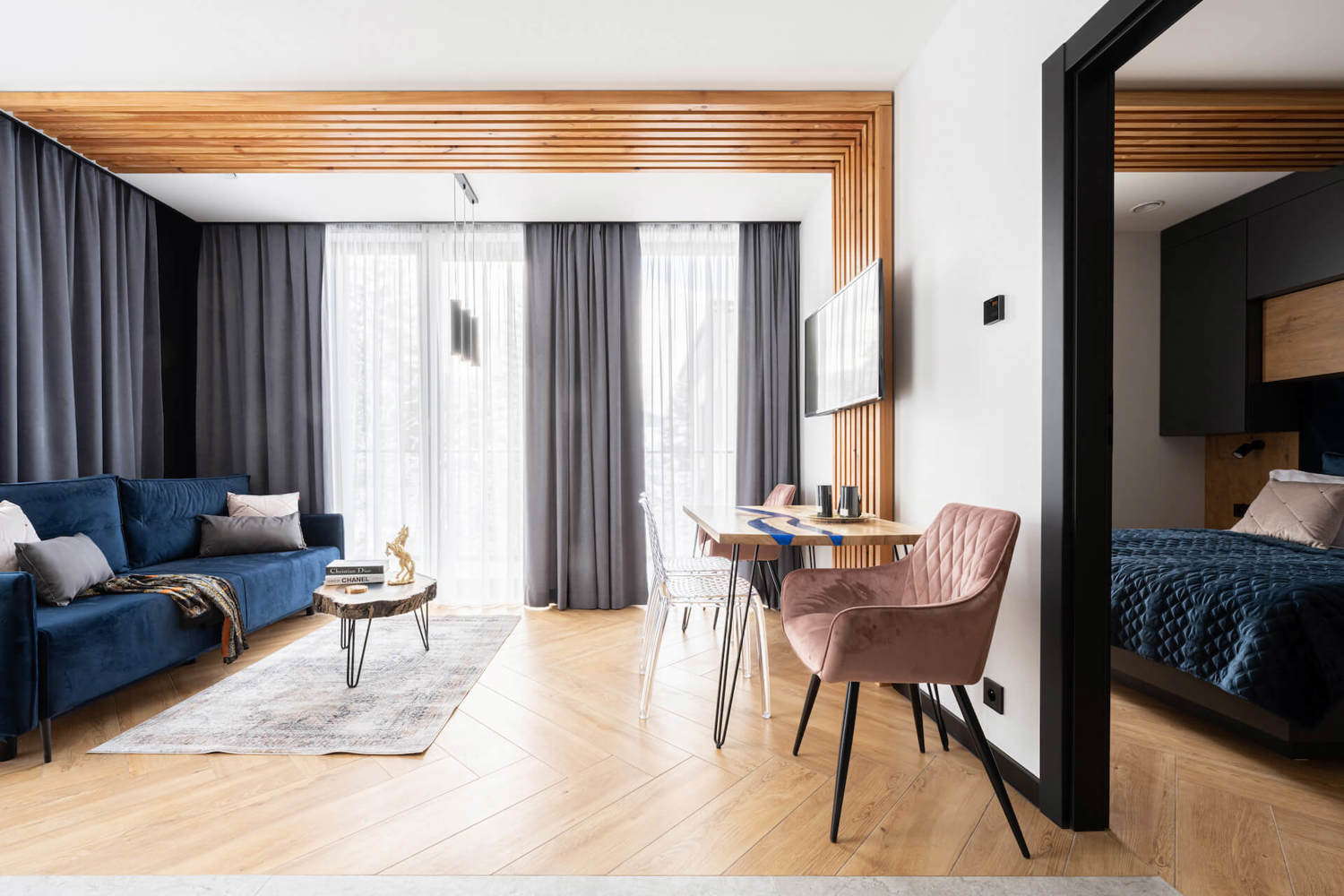 Apartament z oddzielna sypialnią i dużym łóżkiem małżeńskim. Przestronny salon oraz wygodna, rozkładana kanapa umili pobyt każdemu miłośnikowi górskich wycieczek.Dopracowany w każdym detalu. Dla naszych gości bezpłatny dostęp do strefy SPA (basen z funkcja jacuzzi oraz sauna fińska, otwarte od 16:00 do 21:00)
