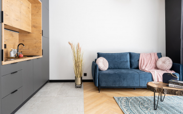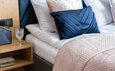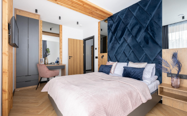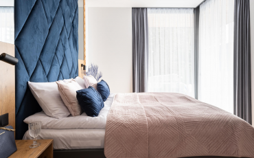 A spacious suite with a large double bed, a living room with a kitchenette and a large sofa as well as a bathroom. Offers access to a terrace which leads directly to the garden.