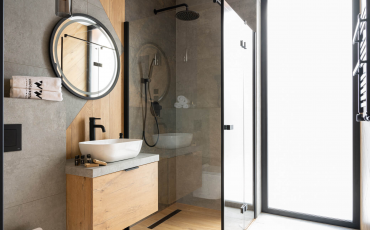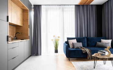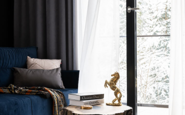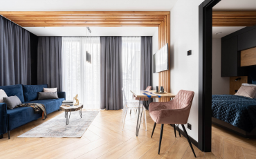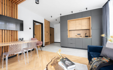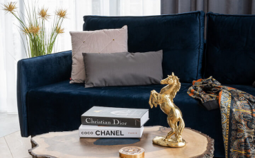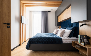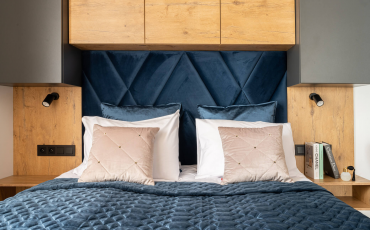 A spacious suite with a large double bed, a living room with a kitchenette and a large sofa as well as a bathroom. Offers access to a terrace which leads directly to the garden.